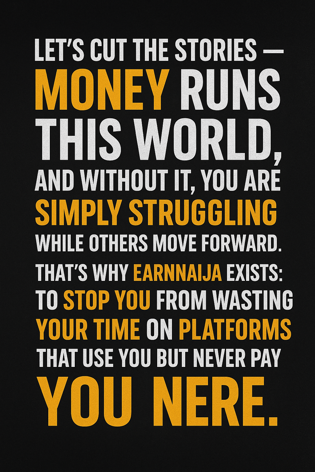 #EarnNaija #StopPostingForFree #EarnPerSecond #EarnPerMinute #NaijaCreators #MakeMoneyOnlineNaija #UseWhatPaysYou #PostAndEarn #DigitalIncomeNigeria #WakeUpNaija