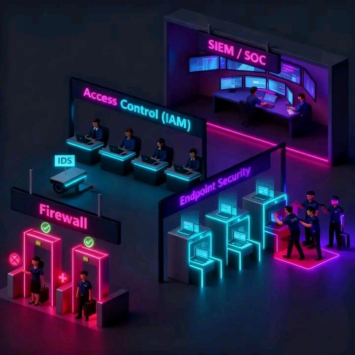 Cybersecurity isn’t just one tool—it’s an ecosystem. 🔐 This visual shows how different security layers work together to protect an organization: 🔥 Firewall — Controls what gets in and out 👁️ IDS — Watches for suspicious activity 🆔 Access Control (IAM) — Ensures only the right people have the right access 💻 Endpoint Security — Protects individual devices 📊 SIEM/SOC — Security analysts monitoring threats in real time When these components work together, organizations can detect, prevent, and respond to cyber threats more effectively. Cybersecurity is strongest when it’s layered, proactive, and unified. 💪🔒 #fblifestyle