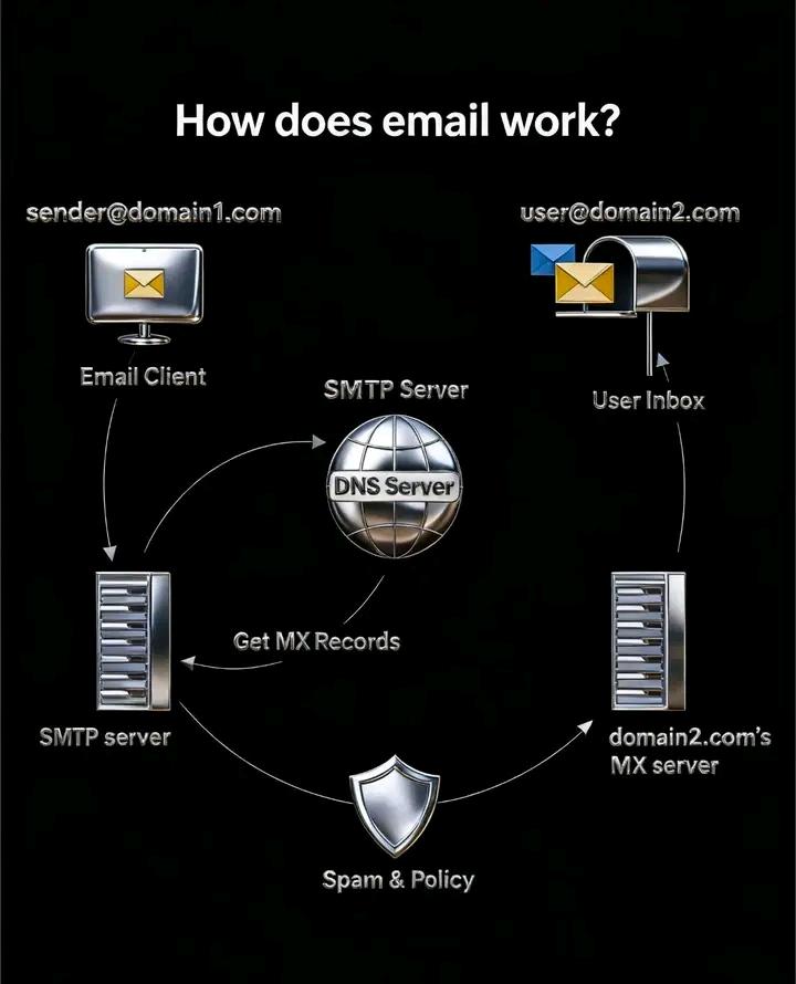 Ever wondered how email actually works? From sending a message to landing in your inbox, here's the journey your email takes: 1️⃣ You write your message on your email client. 2️⃣ It travels through an SMTP server. 3️⃣ The DNS server helps find the recipient's server. 4️⃣ Spam and security filters check it for safety. 5️⃣ Finally, it's delivered to the recipient's inbox. ✉️ This process happens in the blink of an eye! ⏱️ #TechSimplified #HowEmailWorks #EmailJourney #DigitalCommunication #fblifestyle